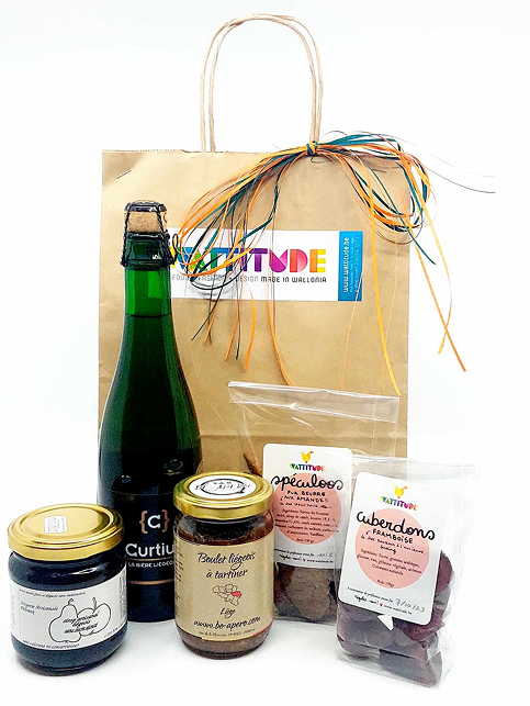 Wattitude vous propose des paniers cadeaux composés de produits wallons disponibles en boutique.