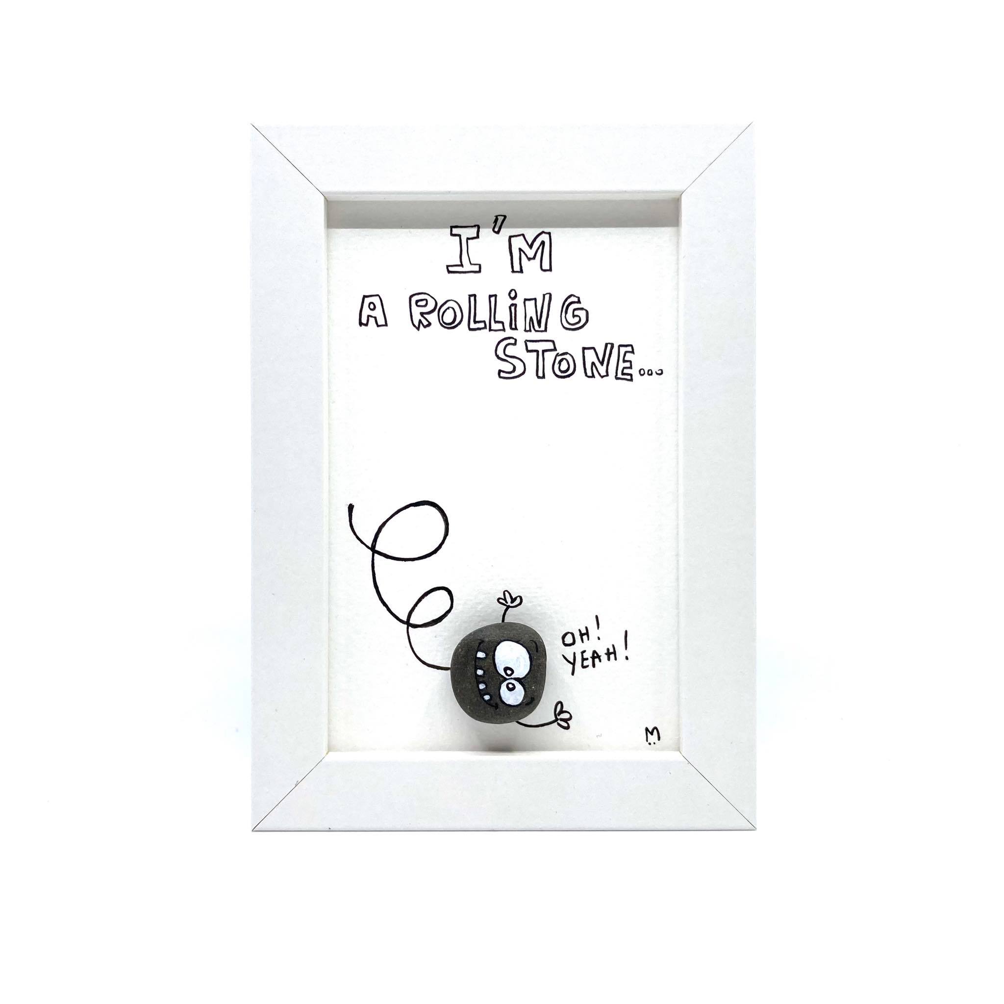 Cadre galet "I'm a rolling stone..." Blanc