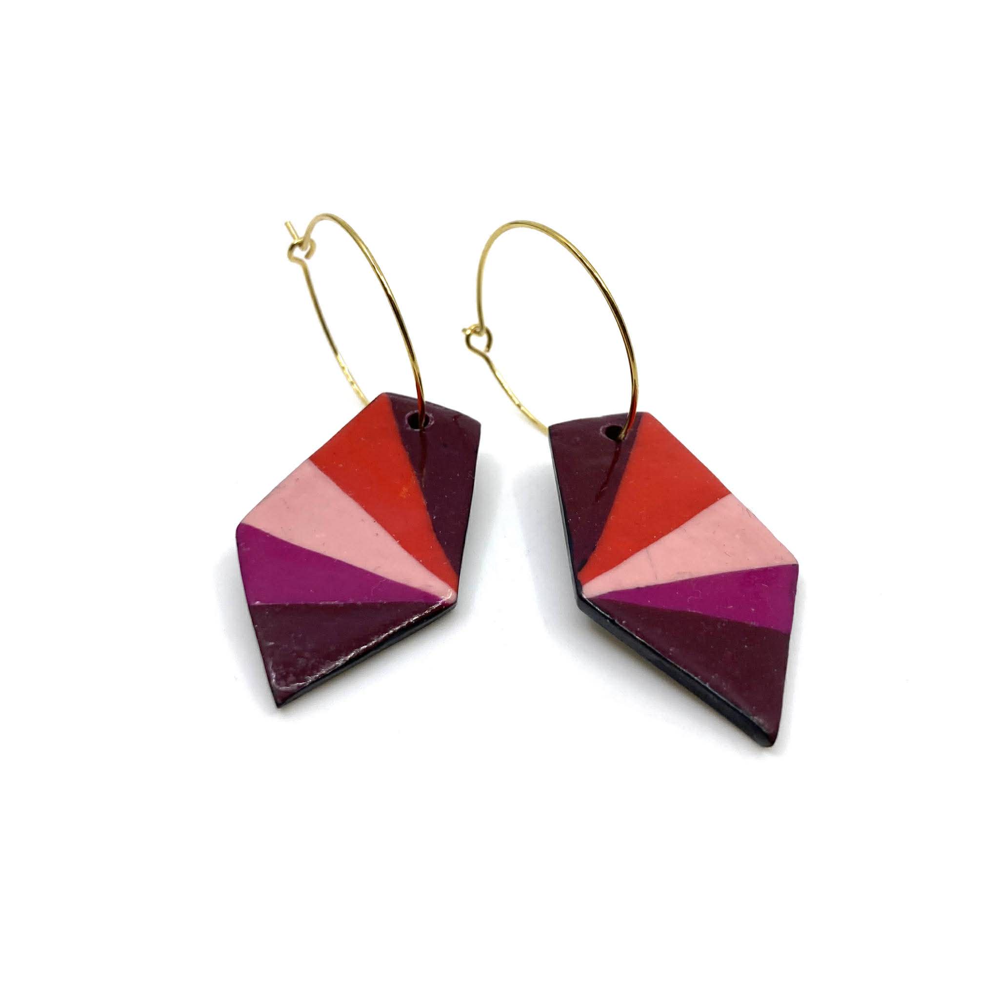 Créoles 25 mm – pièce argile polymère. Les bijoux sont conçus avec des matériaux de qualité européenne et garantis sans nickel, ni plomb, ni cadmium.