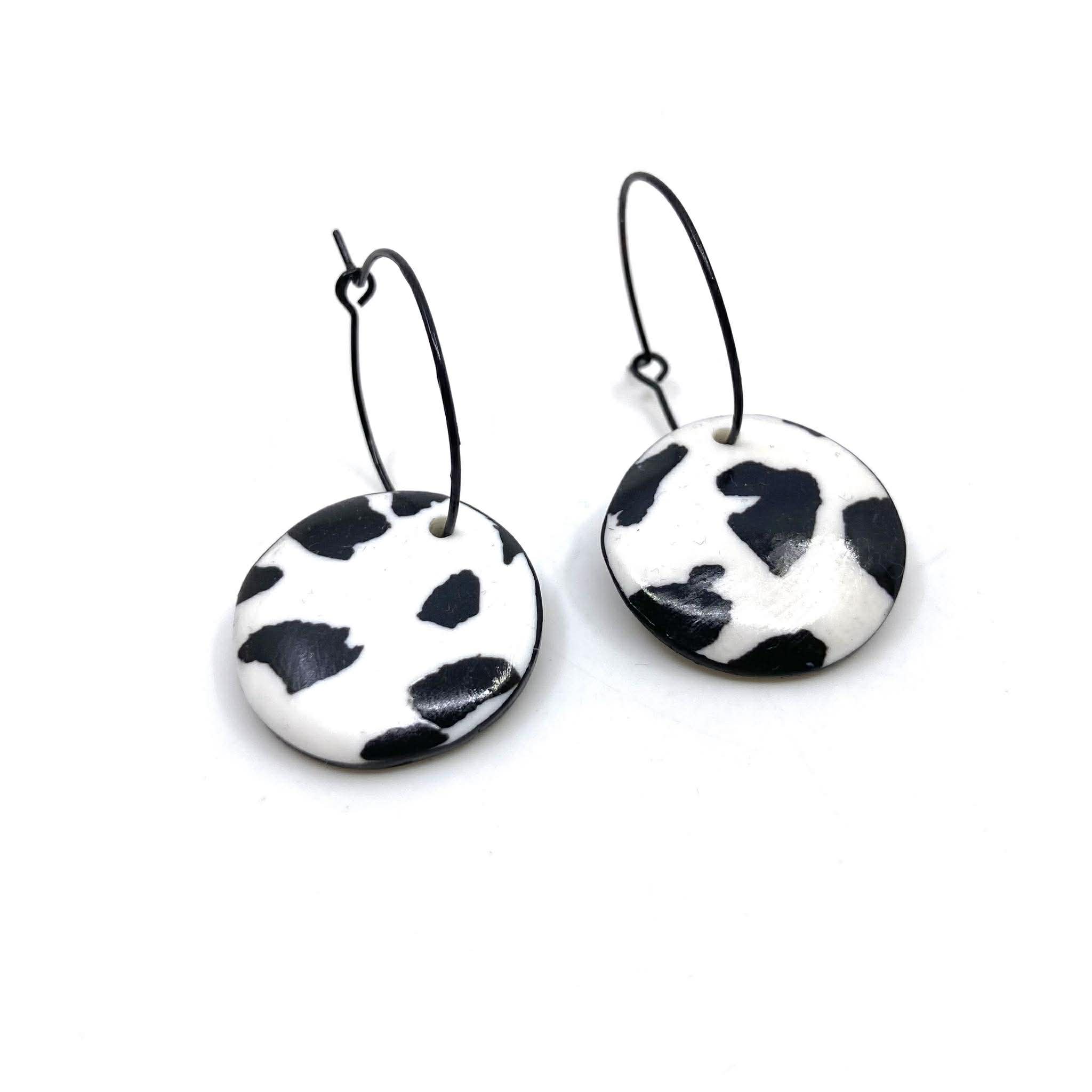 Créoles noires 25 mm – pièce argile polymère (22mm). Les bijoux sont conçus avec des matériaux de qualité européenne et garantis sans nickel, ni plomb, ni cadmium.