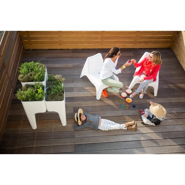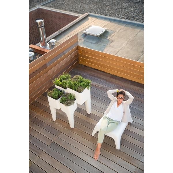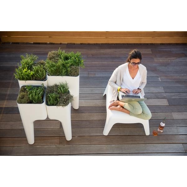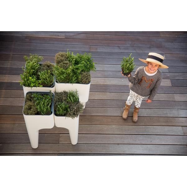 Son design contemporain s'intègrera parfaitement sur votre terrasse, jardin, mais aussi dans votre cuisine ou votre salon grâce à la possibilité de garder étanche les bacs intérieurs !